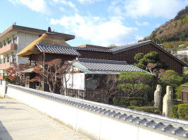 | 呉市下蒲刈町の松濤園にある陶磁器館(旧木上邸)は、宮島の門前町に18世紀末頃に建てられた町家を、古伊万里の名品の展示施設として移築した呉市指定有形文化財建物です。 |
